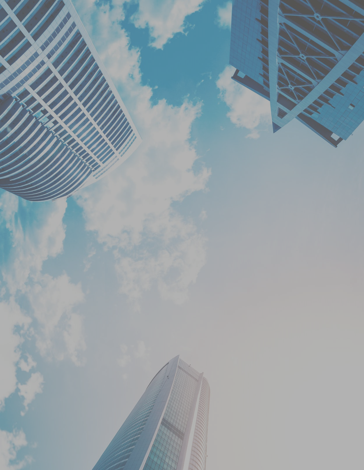 looking up at skyscrapers and a cloudy sky