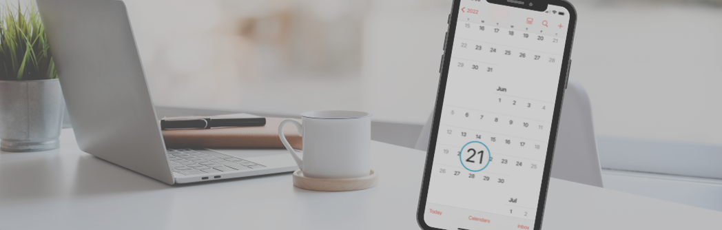Calendar on phone with backdrop of a desk