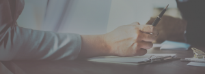 arm on desk with pen in hand