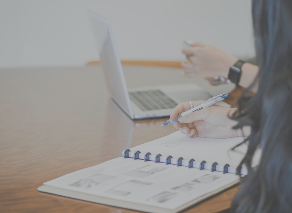 Close up of hand with pen writing in notebook